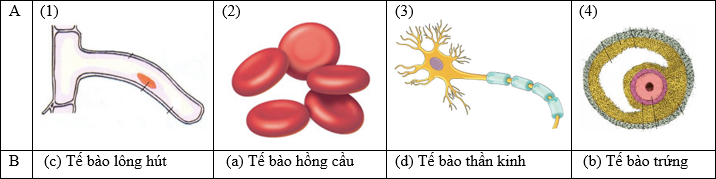 Nối các tế bào ở hàng A với tên tế bào ở hàng B sao cho phù hợp