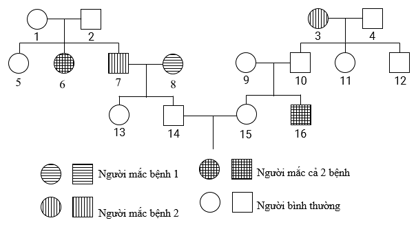 Sơ đồ phả hệ dưới đây mô tả 2 bệnh di truyền độc lập nhau, mỗi bệnh do 1 gen qui định.