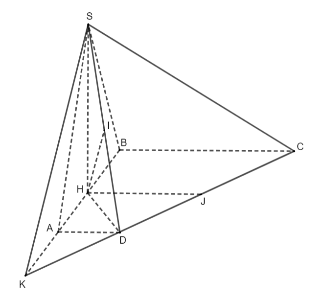 Đưa khoảng cách từ điểm \(A\) tới mặt phẳng \(\left( {SCD} \right)\) về khoảng cách từ chân đường cao tới mặt phẳng \(\left( {SCD} \right).\)