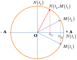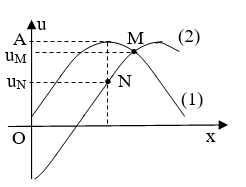 Một sóng cơ là sóng ngang hình sin truyền dọc theo một sợi dây đàn hồi căng ngang rất dài Ox với bước sóng \(\lambda \) và chu kỳ T. Tại thời điểm t1 thì hình dạng của một đoạn dây tương ứng như đường (1) và tại thời điểm \({t_2}\) (với \({t_2}-{t_1} < 0,25T\)) thì hình dạng của đoạn dây là đường (2) với M và N là các điểm trên dây. Biết biên độ sóng không đổi và \(A_{}^2 = u_M^2 + u_N^2\). Tại thời điểm \({t_3}\), với \({t_3}-{t_1} = 0,25T\), thì tỷ số tốc độ của điểm M với tốc độ của điểm N là