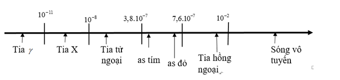 Sử dụng thang sóng điện từ và công thức tính bước sóng: \(f = \dfrac{c}{\lambda } \Rightarrow f\~\dfrac{1}{\lambda }\)