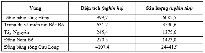 Cho bảng số liệu:DIỆN TÍCH VÀ SẢN LƯỢNG LÚA Ở MỘT SỐ VÙNG NƯỚC TA NĂM 2018 (Nguồn: Niên
