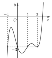 Cho hàm số \(f\left( x \right)\) thỏa mãn \(f\left( 0 \right) < 0\). Đồ thị hàm số \(y = f'\left( x \right)\) cho bởi hình vẽ dưới đây.