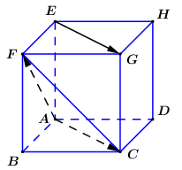 Cho hình lập phương \(ABCD.EFGH\). Góc giữa cặp vectơ \(\overrightarrow {AF} \) và \(\overrightarrow {EG}
