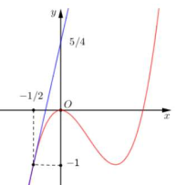 Cho hàm số \(y = f\left( x \right)\) là hàm số bậc ba như hình vẽ, đường thẳng \(\Delta \) là tiếp tuyến của đồ thị hàm số tại điểm có hoành độ bằng \( - \dfrac{1}{2}\). Biết \(\int\limits_{ - \frac{5}{2}}^{ - 1} {xf''\left( {x + 2} \right)dx} = \dfrac{m}{n}\), \(m,\,\,n \in \mathbb{N};\,\,\left( {m;n} \right) = 1\). Tính \({m^2} + n\).