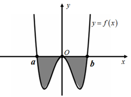 Hình vẽ bên biểu diễn trục hoành cắt đồ thị \(y = f\left( x \right)\) tại ba điểm có hoành độ \(0,a,b\,\,\left( {a < 0 < b} \right)\). Gọi S là hình phẳng giới hạn bởi đồ thị \(y = f\left( x \right)\) và trục hoành, khẳng định nào sau đây là sai?