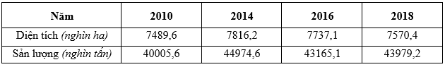 Cho bảng số liệu sau:DIỆN TÍCH VÀ SẢN LƯỢNG LÚA CỦA NƯỚC TA, GIAI ĐOẠN 2010 - 2018 (Nguồn: