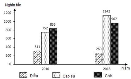 Cho biểu đồ về một số cây công nghiệp lâu năm của nước ta năm 2010 và năm 2018: