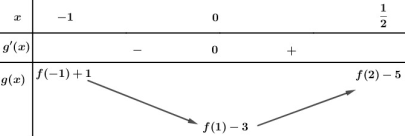 Giá trị nhỏ nhất của hàm số \(g\left( x \right) = f\left( {2x + 1} \right) - 4x - 3\) trên đoạn \(\left[ { - 1;\dfrac{1}{2}} \right]\) bằng: