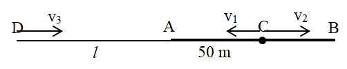 Giang và Huệ cùng đứng một nơi trên một chiếc cầu AB cách đầu cầu 50 m. Lúc Tâm vừa đến một nơi cách đầu cầu A một quãng đúng bằng chiều dài chiếc cầu thì Giang và Huệ bắt đầu đi hai hướng ngược nhau. Giang đi về phía Tâm và Tâm gặp Giang ở đầu cầu A, gặp Huệ ở đầu cầu B. Biết vận tốc của Giang bằng nửa vận tốc của Huệ. Tìm chiều dài \(l\) của chiếc cầu.