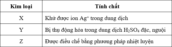 Tính chất của các kim loại X, Y, Z được ghi ở bảng sau: Các kim loại X, Y, Z lần lượt
