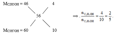 Dựa vào sơ đồ đường chéo ⟹ tỉ lệ số mol giữa 2 ancol