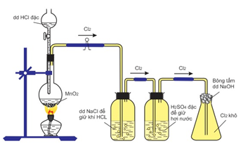 Cho hình vẽ mô tả quá trình điều chế Cl2 trong phòng thí nghiệm như sau: