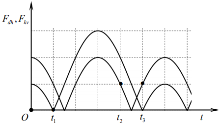 Một con lắc lò xo treo thẳng đứng, dao động điều hòa tại nơi có \(g = 10m/{s^2}\) và khối lượng vật \(m = 100g\). Hình bên là đồ thị biểu diễn sự phụ thuộc của độ lớn lực kéo về \({F_{kv}}\) tác dụng lên vật và độ lớn lực đàn hồi \({F_{dh}}\) của lò xo theo thời gian t. Biết \({t_2} - {t_1} = \frac{\pi }{{20}}s\). Động năng của vật tại thời điểm \(t = {t_3}\) gần nhất giá trị nào sau đây?