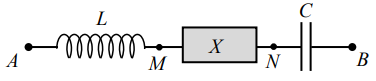 Đặt điện áp \(u = {U_0}.\cos \left( {100\pi t} \right)\) vào hai đầu đoạn mạch AB như hình bên. Trong đó, cuộn cảm thuần có độ tự cảm \(L = \frac{1}{\pi }H\), tụ điện có điện dung C; X là đoạn mạch chứa các phần tử có \({R_1},{L_1},{C_1}\) mắc nối tiếp. Biết \(4{\omega ^2}LC = 1\), các điện áp hiệu dụng: \({U_{AN}} = 120V;{U_{MB}} = 90V\), góc lệch pha giữa \({u_{AN}}\) và \({u_{MB}}\) là \(\frac{{5\pi }}{{12}}\). Công suất của X gần nhất giá trị nào sau đây?