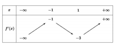 Cho \(y = f\left( x \right)\) là hàm số đa thức bậc 4 thỏa mãn \(f\left( 1 \right) \le 0\) và hàm số \(y = f'\left( x \right)\) có bảng biến thiên như sau