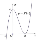Cho hàm số \(y = f\left( x \right) = \dfrac{1}{4}{x^4} + a{x^3} + b{x^2} + cx\) có đồ thị \(\left( C \right)\) của hàm số \(y = f'\left( x \right)\) như hình sau: