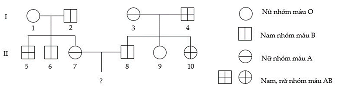 Cho phả hệ sau:Biết rằng tính trạng nhóm máu ở người do 2 gen trên NST thường phân li độc