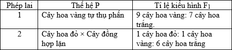 Một loài thực vật, màu sắc hoa do 3 cặp gen phân li độc lập quy định. Khi tiến hành pháp lai giữa các cây, người ta thu được kết quả sau: