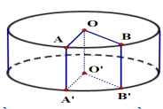 Nga làm thạch rau câu có dạng khối trụ với đường kính là \(20\,\,cm\) và chiều cao bằng \(7\,\,cm\). Nga cắt dọc theo đường sinh một miếng từ khối thạch này (như hình vẽ), biết \(O,\,\,O'\) là tâm của hai đường tròn đáy, đoạn thẳng \(AB = 6\,\,cm\). Hỏi thể tích của miếng thạch đã cắt ra gần bằng với giá trị nào sau đây?