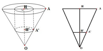 Một bình đựng nước dạng hình nón (không có đáy), đựng đầy nước. Biết chiều cao của
