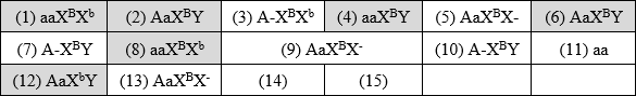 (4). Nếu người phụ nữ số 13 tiếp tục mang thai đứa con thứ 2 và bác sĩ cho biết thai nhi không bị bệnh bạch tạng. Xác suất để thai nhi đó không bị bệnh máu khó đông là 85%.