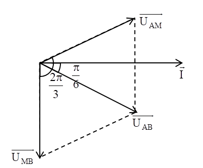 Đặt điện áp \(u = U\sqrt 2 \cos 100\pi t\,\,\left( V \right)\) (U không đổi) vào hai đầu đoạn mạch AB gồm hai đoạn mạch AM và MB mắc nối tiếp. Đoạn AM gồm cuộn cảm thuần L mắc nối tiếp với điện trở thuần R, đoạn MB chỉ có tụ điện C. Biết điện áp giữa hai đầu đoạn mạch AM và điện áp giữa hai đầu đoạn mạch MB có giá trị hiệu dụng bằng nhau nhưng lệch pha nhau một góc bằng \({120^0}\). Hệ số công suất của đoạn mạch AB gần bằng
