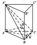 Cho hình lăng trụ đứng \(ABC.A'B'C'\) có tất cả các cạnh bằng \(a\). Khoảng cách từ \(A\) đến
