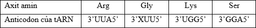 Một đoạn pôlipeptit ở sinh vật nhân sơ có trình tự các axit amin như sau: … Gly – Arg – Lys – Ser …