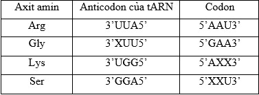 Biết rằng mỗi loại axit amin được vận chuyển bởi tARN có anticodon là