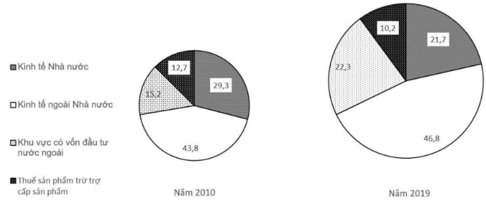 Cho biểu đồ về GDP của nước ta 2010 và 2018 (%) (Số liệu theo Niên giám thống kê Việt Nam,