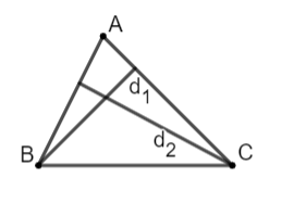 + Giả sử \({d_1}\) là đường cao kẻ từ \(B\), \({d_2}\) là đường cao kẻ từ \(C\). Từ đó, tìm được tọa độ của \(B,\,\,C\).