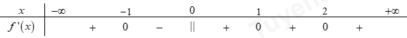 Cho hàm số \(f\left( x \right)\) liên tục trên \(\mathbb{R}\) và có bảng xét dấu đạo hàm \(f'\left( x