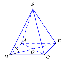 Cho hình chóp tứ giác đều \(S.ABCD\) có cạnh đáy bằng \(2a\) và cạnh bên tạo với đáy một