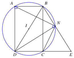Trong mặt phẳng tọa độ \(Oxy\), cho hình chữ nhật \(ABCD\) có đỉnh \(A\left( { - 3;\,\,1} \right)\) và điểm \(C\) thuộc đường thẳng \(d:\,\,x - 2y - 5 = 0\). Gọi \(E\) là giao điểm thứ \(2\) của đường tròn tâm \(B\) bán kính \(BD\) với đường thẳng \(CD\). Hình chiếu vuông góc của \(D\left( {a;\,\,b} \right)\) xuống đường thẳng \(BE\) là điểm \(N\left( {6;\,\, - 2} \right)\). Tính \(S = a + b\).