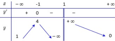 Cho hàm số \(y = f\left( x \right)\) xác định trên \(\mathbb{R}\backslash \left\{ 1 \right\}\) và có bảng