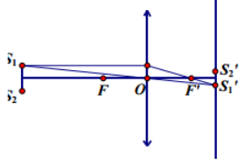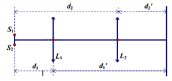 Một tấm nhôm mỏng, trên có rạch hai khe hẹp song song \({S_1}\) và \({S_2}\) và đặt cách một màn 1,2 m. Đặt giữa màn và hai khe một thấu kính hội tụ có tiêu cự \(\frac{{80}}{3}cm\), người ta tìm được hai trị trí của thấu kính cho ảnh của hai khe \({S_1}\) và \({S_2}\) rõ nét trên màn. Ở vị trí mà ảnh lớn hơn thì khoảng cách giữa hai ảnh \({S_1}'\) và \({S_2}'\) là 1,6mm. Khi bỏ thấu kính ra và chiếu sáng hai khe bằng ánh sáng đơn sắc có bước sóng \(0,6\mu m\) thì khoảng vân giao thoa trên màn là