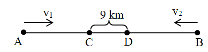 Có hai ô tô xuất phát từ A và B, chuyển động thẳng đều ngược chiều nhau. Nếu hai xe xuất phát cùng một lúc thì sau 2 giờ chúng gặp nhau tại D. Nếu xe đi từ A xuất phát muộn hơn xe đi từ B là 0,5 giờ thì chúng gặp nhau ở C cách D là 9 km. Biết quãng đường AB dài 150 km. Xác định vận tốc của mỗi xe.