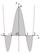 Cho hàm số \(y = f\left( x \right) = a{x^4} + b{x^2} + c\) có đồ thị như hình vẽ. Diện tích \(S\) của miền được tô xiên như hình được tính theo công thức nào?
