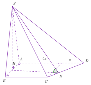 Cho hình chóp \({S.ABCD}\) có đáy \({ABCD}\) là hình thang vuông tại \(A\), \(B\) ,biết \(AB = BC = 2a\),