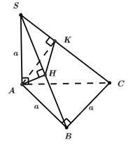 Cho hình \(S.ABC\) có đáy \(ABC\) là tam giác vuông cân tại \(B\), \(SA \bot \left( {ABC} \right)\). Kẻ \(AH,\,\,AK\) lần lượt vuông góc với \(SB,\,\,SC\) tại \(H\) và \(K\), có \(SA = AB = a\).