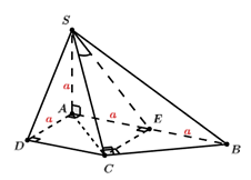 Cho hình chóp \(S.ABCD\) có \(SA\) vuông góc với đáy, đáy \(ABCD\) là hình thang vuông tại \(A\) và \(D\), biết \(SA = AD = CD = \dfrac{1}{2}AB = a\).