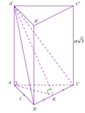 Cho lăng trụ tam giác đều \(ABC.A'B'C'\), biết cạnh đáy bằng a, cạnh bên bằng \(a\sqrt 3 \).
