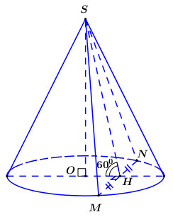 Cắt hình nón \(\left( \aleph \right)\) bởi mặt phẳng đi qua đỉnh và tạo với mặt phẳng chứa