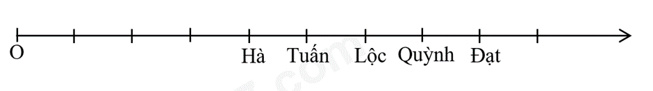 b) Dựa vào tia số trên, hãy cho biết nhà các bạn Tuấn, Lộc, Đạt cách trường bao nhiêu kilômet?