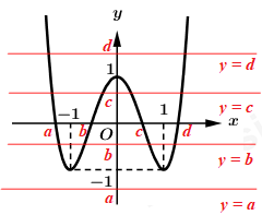 - Giải phương trình \(f\left( x \right) = 0\) tìm \(x\) (sử dụng phương pháp tương giao đồ thị hàm số), từ đó suy ra \(f\left( x \right) = k\) nào đó.