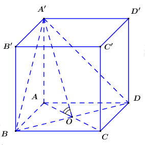Cho khối hộp chữ nhật \(ABCD.A'B'C'D'\) có đáy là hình vuông, \(BD = 2a\), góc giữa hai mặt phẳng