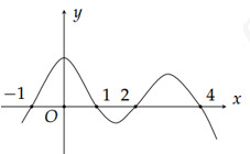 Cho hàm số \(y = f\left( x \right)\) có đồ thị \(y = f'\left( x \right)\) trên \(\mathbb{R}\) như hình vẽ (trên \(\mathbb{R}\) thì đồ thị \(y = f'\left( x \right)\) là một nét liền và chỉ có 4 điểm chung với \(Ox\) tại các điểm có hoành độ lần lượt là \( - 1;\,\,1;\,\,2;\,\,4\)).