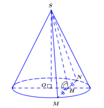 Cắt hình nón \(\left( \aleph \right)\) bởi mặt phẳng đi qua đỉnh và tạo với mặt phẳng chứa