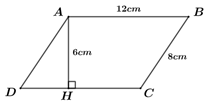 Cho hình bình hành \(ABCD\) có \(AB = 12cm,\,\,BC = 8cm,\,\,AH = 6cm\) (\(AH\) là đường cao ứng với cạnh